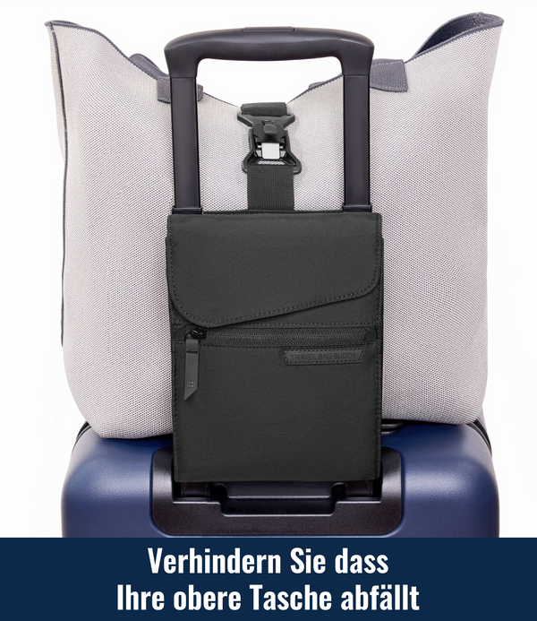 - Wenn Sie an Ihrem Zielort ankommen, kann der zusätzliche Taschengurt entfernt werden und der Travel Bag Buddy wird zu einer praktischen diebstahlsicheren Umhängetasche.
